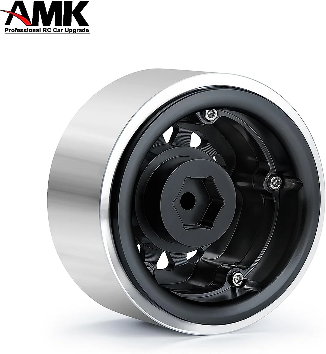 AMK 4Pcs Aluminum Alloy 17.5mm Hex Hub 2.9 Beadlock Wheels Rims for 1/6 RC Crawler Car Axial SCX6 Upgrades(Black)