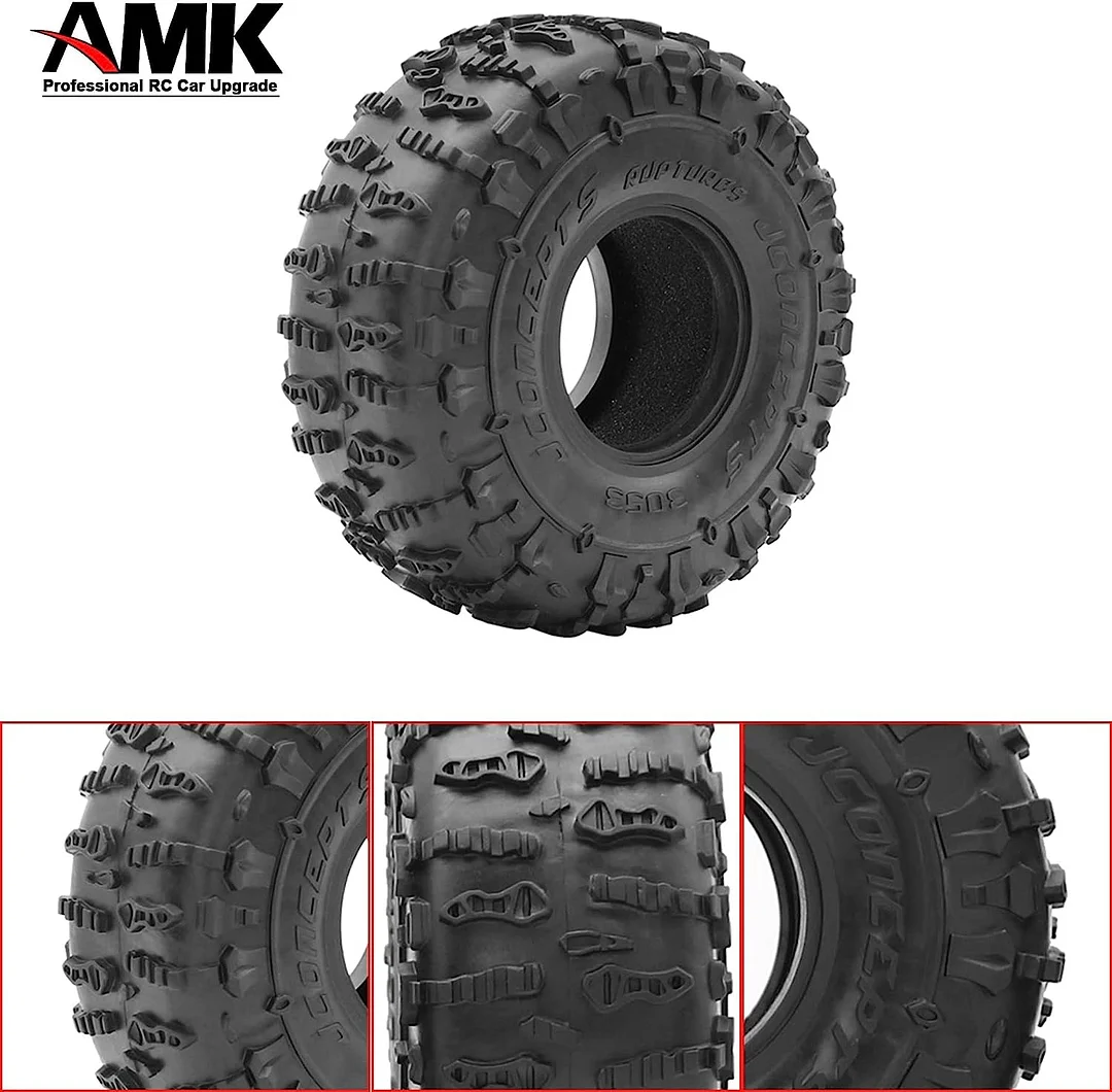 【Package Includes】This package includes 4PCS of 1.9 RC crawler tires, 100% new and genuine AMK RC products that are well-made and durable. They are perfect accessories for modifying and upgrading your RC car, adding details and personality to your vehicle.