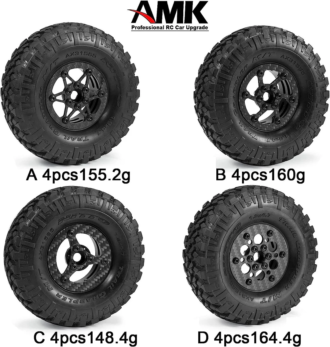 AMK 1.9 Inch Aluminum Carbon Fiber Wheel Rims. The wheel face is made of carbon fiber, while the clamp ring is made of POM plastic. The rear ring and hub are CNC machined from aluminum alloy and feature a black anodized finish. The design includes a high clearance inner wheel opening for improved performance and faster tire changes with the use of 6/3 screws. The offset is +0.35mm and additional offset can be achieved by changing hubs.
